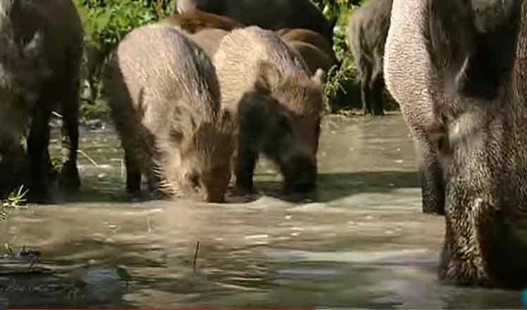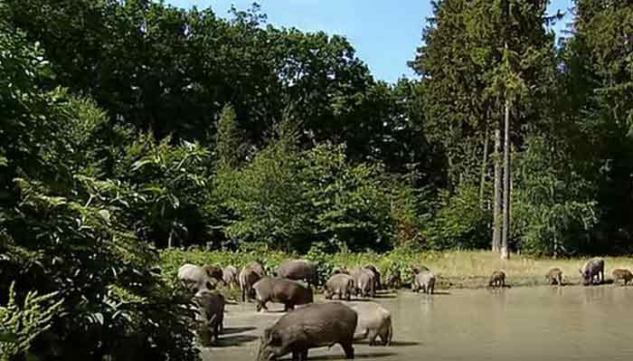 Cuando el cálido suelo del bosque está cubierto de narcisos silvestres, de anémonas nemorosas y las celidonias menores se abren al sol y el bosque vuelve a estar verde de nuevo, este sirve de hábitat para una nueva generación de plantas y animales, siendo un gran hábitat del jabalí. Hay los jabatos exploran las maravillas de la primavera, emiten el típico sonido de jabalí, tienen que meter el hocico en todas partes, la madre jabalina enseña los jabatos. Los jóvenes jabalíes invierten el tiempo en practicar combates cuerpo a cuerpo, casi como adultos aprenden posturas amenazantes y luchando contra hombro.