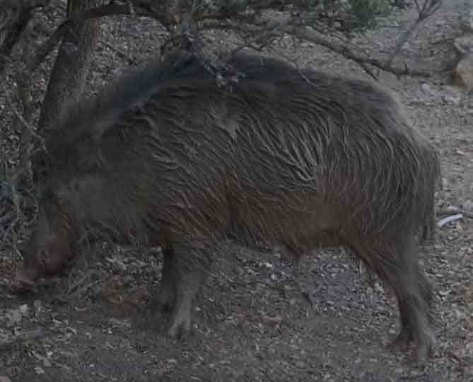 Es mamífero de tamaño mediano, el jabalí, tiene una cabeza alargada, puntiaguda y un cuello grueso. Provisto de unas patas muy cortas y un cuerpo con forma cilíndrica. Tiene un gran olfato, oído y gusto, no pudiendo decir lo mismo de su vista, que es muy deficiente.